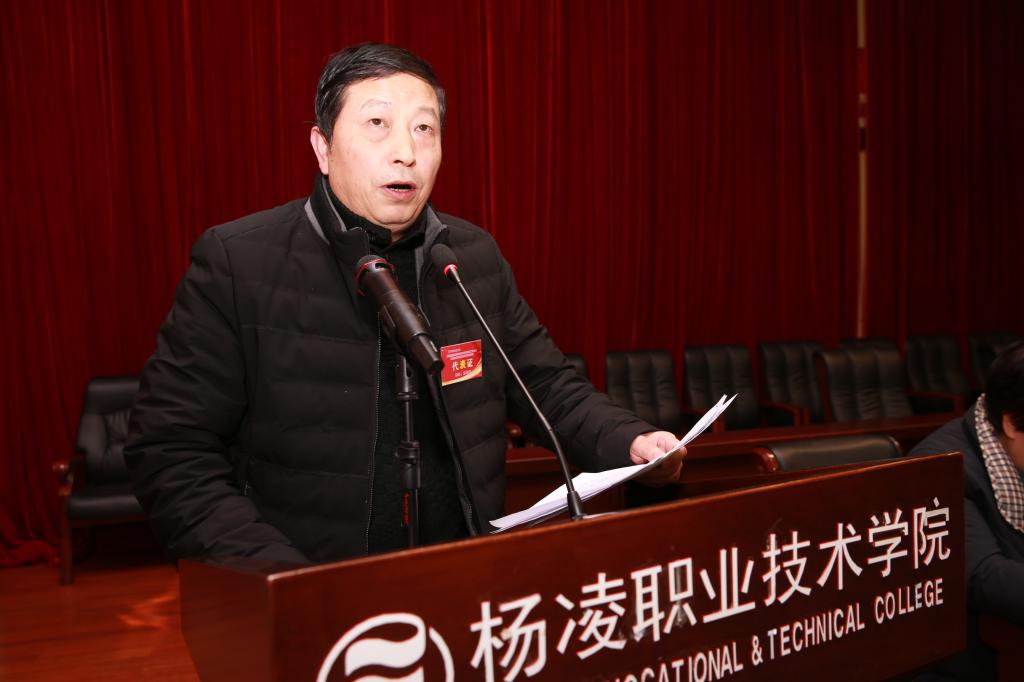 王周锁首先代表学院作了题为《团结拼搏 奋发有为 为全面推进一流学院建设不懈奋斗》的工作报告。报告指出,2018年,学院坚持以习近平新时代中国特色社会主义思想和党的十九大精神为指导,以“十三五”规划为统领,以全面提升办学质量为中心,以诊断改进工作为抓手,坚持立德树人根本任务,持续深化教育教学改革,不断提升人才培养水平、社会服务能力和国际影响力,奋力推进“全国一流、具有一定国际影响力的高职名校”建设,学院在2018-2019年中国高职高专院校竞争力排行榜中位列第11名,在陕西高职位列第1名。