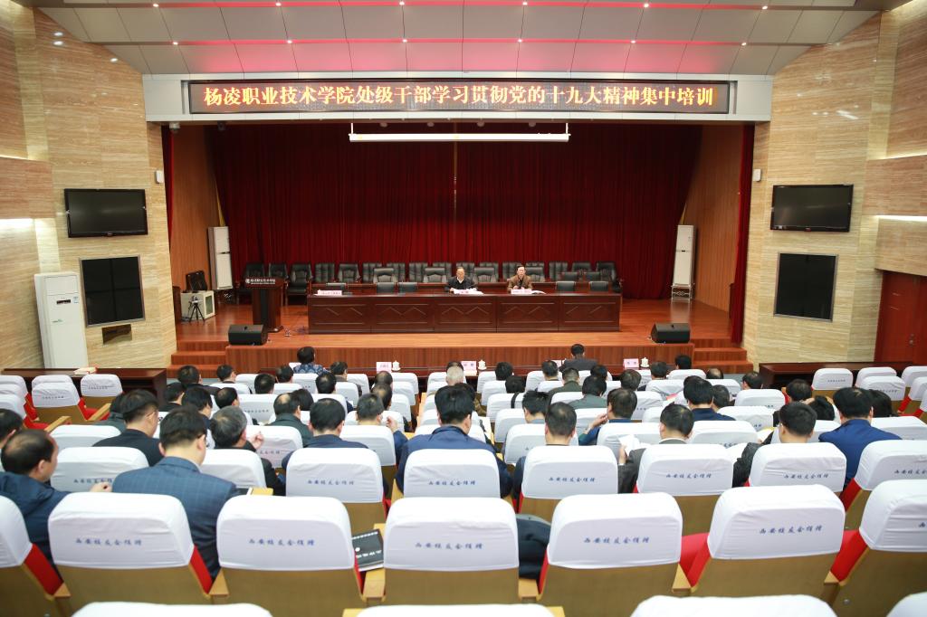 在作动员讲话时,赵曼说,刚从上午召开的首届全国高职高专“优质校”建设与评价论坛上收到鼓舞人心的消息,我院在2018年-2019年中国高职高专院校竞争力排行榜中位列第11名,在陕西高职位列第1名,这个消息鼓舞大家要继续共同努力,照准目标、矢志不渝,进一步自加压力、练好内功、砥砺前行,推动学院发展。他指出,今天开始处级干部学习贯彻党的十九大精神集中培训,是按照省委高教工委的要求、在学院党委的统一领导下组织实施的,大家要抓学习、促工作两不误,保证集训起到良好效果。他要求,大家要充分认识此次培训意义,把握学习重点,拓展学习内容,理论联系实际、学做结合,紧密结合学院的实际,把学习同落实规定、追赶超越发展和践行五个扎实要求结合起来,同落实全国高校思政会和五新战略任务结合起来,同不忘初心、牢记使命主题教育和党建质量提升年结合起来,同当前推进一流学院建设和迎接诊断改革复查验收相关工作结合起来,真正把党的十九大精神学深悟透,真正用十九大精神武装思想、指导实践、推动发展。
