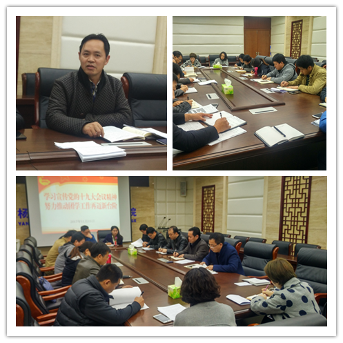 1115日,院团委在醒钟楼204会议室组织召开题为“学习宣传党的十九大精神,努力推动团学工作再迈新台阶”主题会议,院团委委员、团总支书记参加会议。
