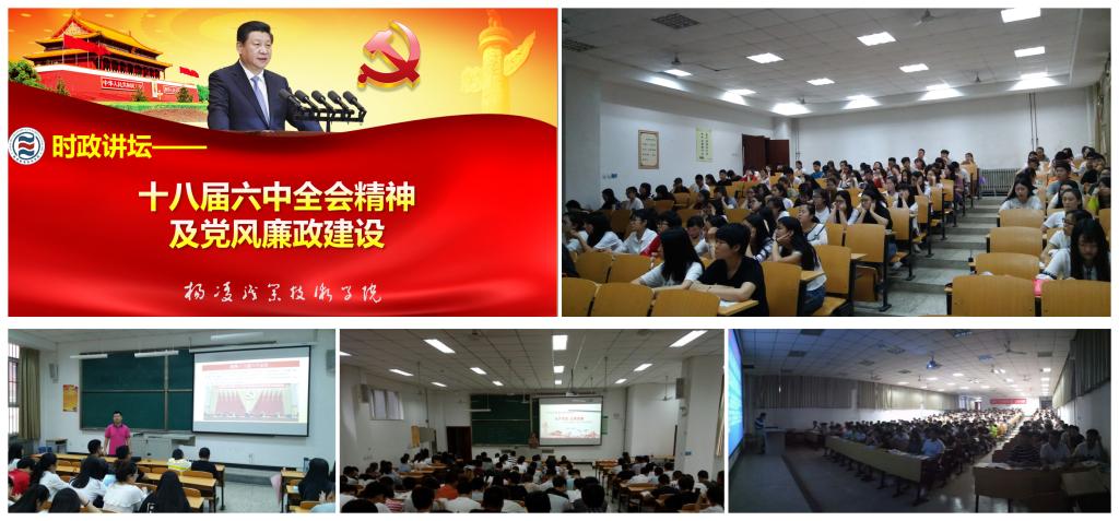68日至9日,由思政部组织的以“十八届六中全会精神及党风廉政建设”为主题的时政讲坛于分别在全院三个校区同时宣讲。主讲教师紧紧围绕党的十八大以来党中央从严治党的新实践新成效,深刻阐释了党的十八届六中全会的重大意义,深入解读了十八届六中全会精神以及全会审议通过的《准则》和《条例》中的许多新观点新要求新举措,深度剖析了党风廉政建设和反腐败斗争的新认识新成效新任务。