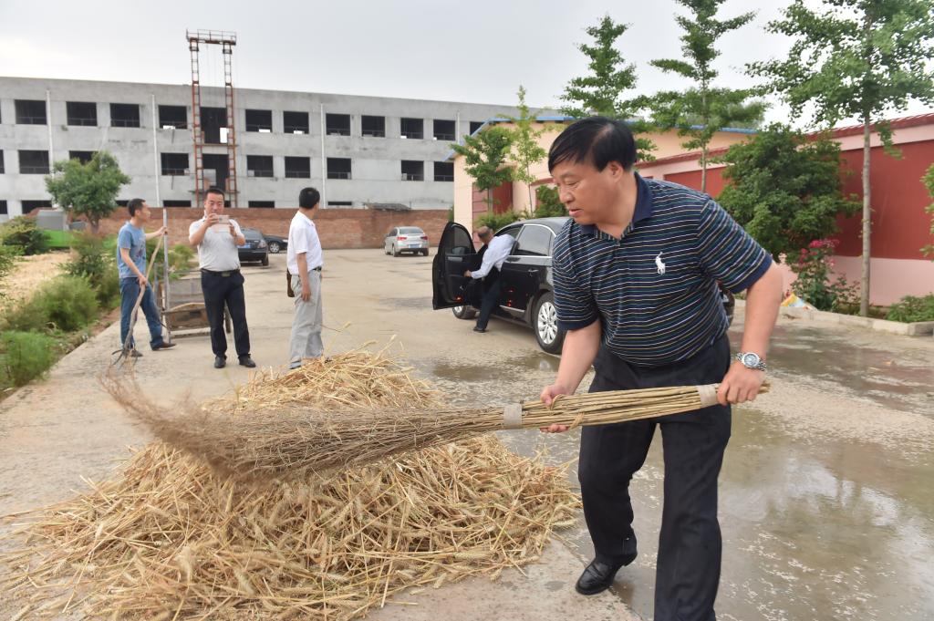 学习活动结束后,董小龙在王周锁和赵瑜的陪同下,参观了赵瑜的试验田,实地了解赵瑜小麦育种的情况。参观途中,突然天上下起了大雨,董小龙、王周锁冒着大雨,和大家一起,帮赵瑜把晒在外面的小麦收回仓库。