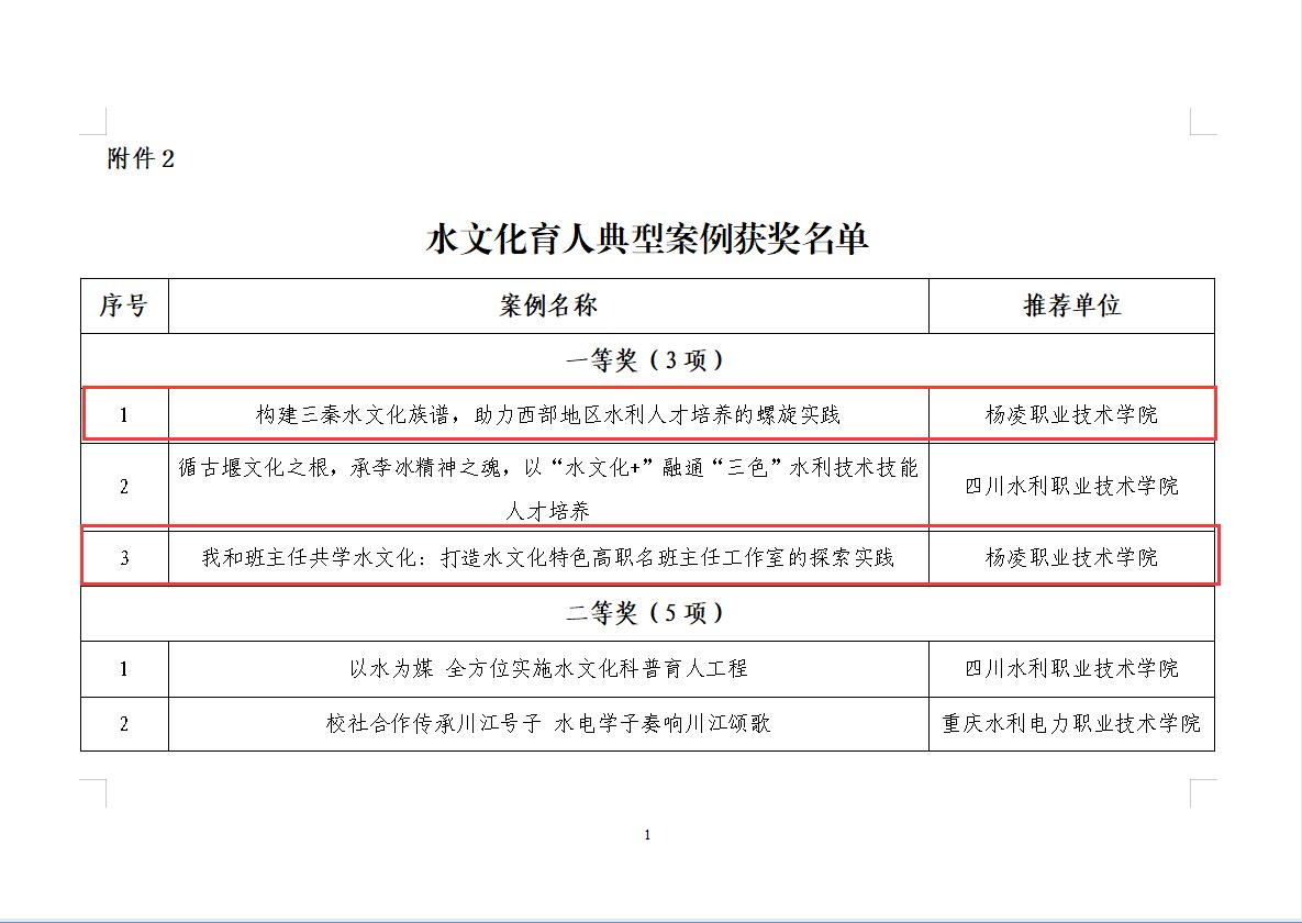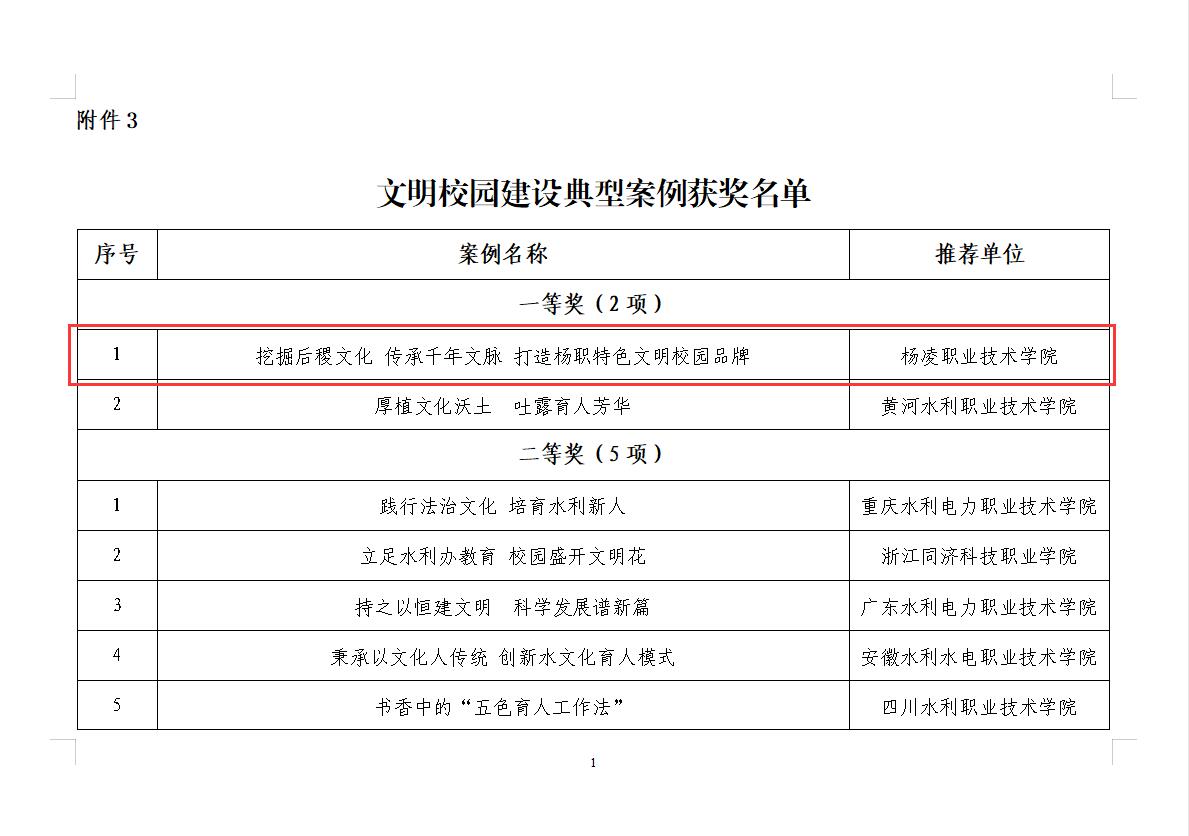 喜讯|全国水利职业院校水文化育人和文明校园建设典型案例评选结果公示 杨凌职院获一等奖3项