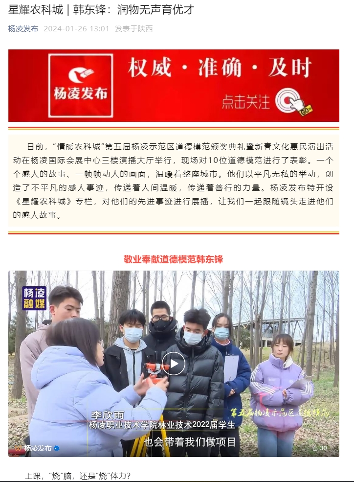 【杨凌发布】星耀农科城 | 韩东锋:润物无声育优才